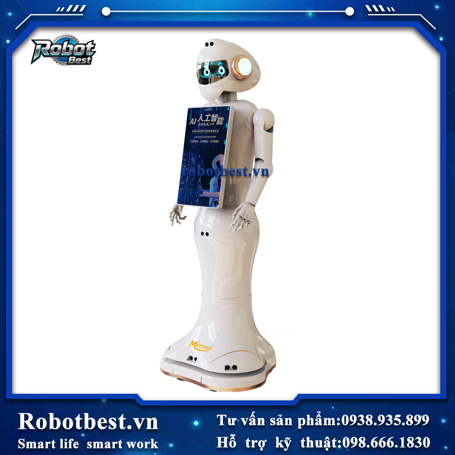 | 4.Quảng cáo di động, tư vấn kinh doanh và dịch vụ •19.5 inch màn hình hiển thị nôi dung quảng cáo,giới thiệu sản phẩm hoặc dịch vụ, phát video, thông báo chương trình khuyễn mãi, cho khách tự tìm kiếm thông tin sản phẩm, hiển thị bản đồ đường đi. •Tùy chỉnh giọng nói đối thoại, hỗ trợ xây dựng mô hình dữ liệu ngành nghề và kho tri thức khổng lồ,tự trả lời các câu hỏi chuyên nghiệp cho khách hàng, và có khả năng học tập và tối ưu hóa tiến bộ liên tục. |